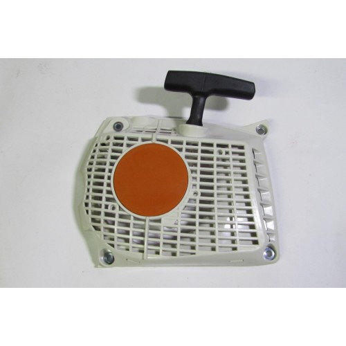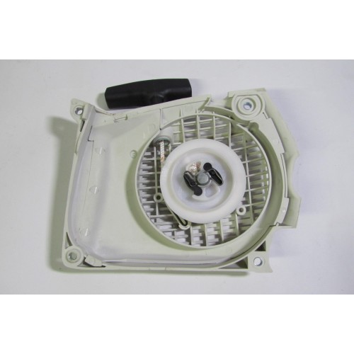необхідної для запуску двигуна. Складається з корпусу, пружини, шківа, троса і ручки стартера. Зустрічаються стартери таких видів як звичайний, так і плавний пуск в таких стартерах використовуються додаткові пружини. Стартери бувають у пластиковому