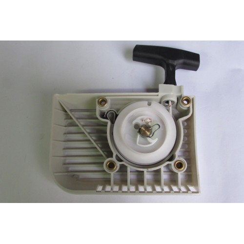 необхідної для запуску двигуна. Складається з корпусу, пружини, шківа, троса і ручки стартера. Зустрічаються стартери таких видів як звичайний, так і плавний пуск в таких стартерах використовуються додаткові пружини. Стартери бувають у пластиковому